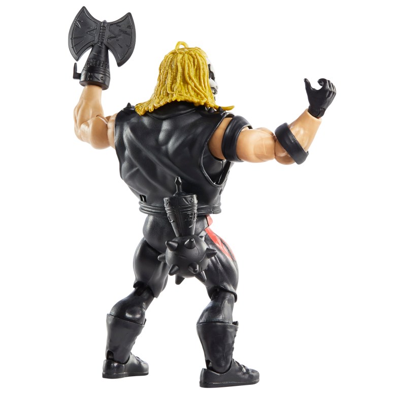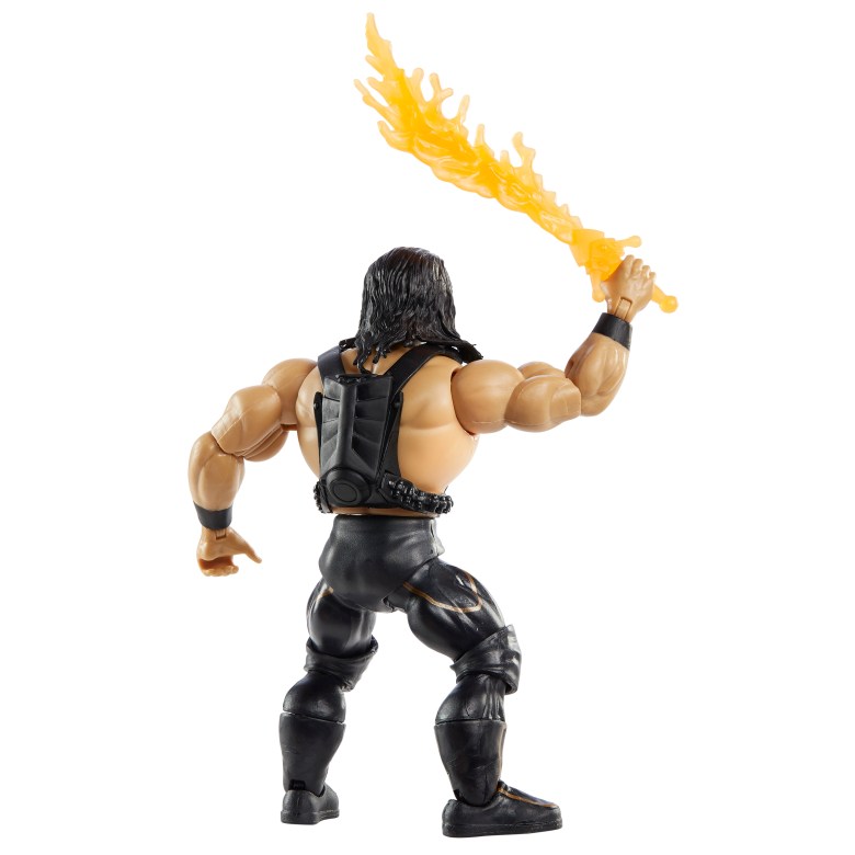 And Seth Rollins is the “Slayer of Kings and Beasts.” (Walmart link) Rollins resembles Zodiac from the original Masters line. He comes with a burning sword accessory.
