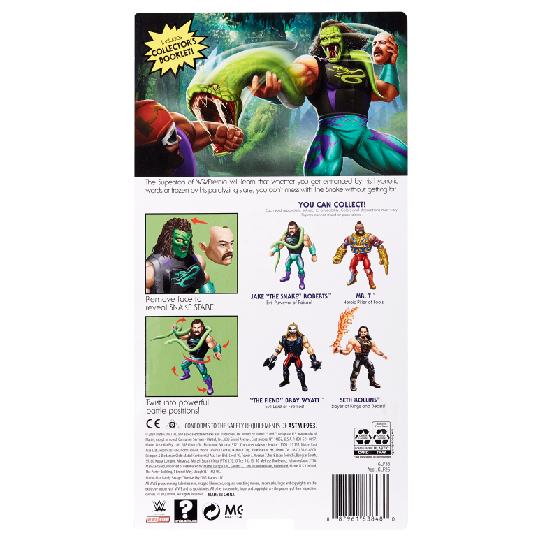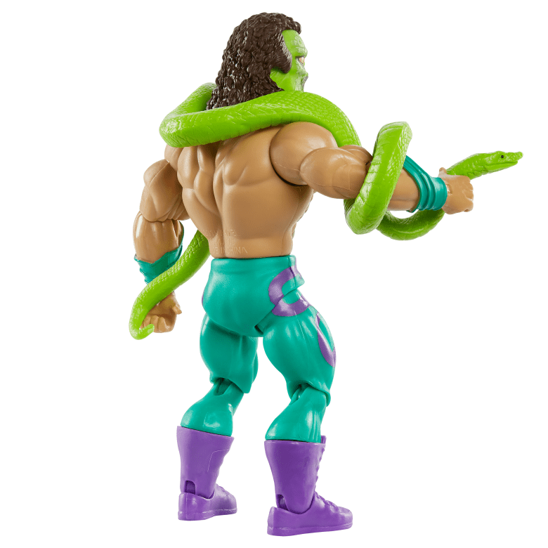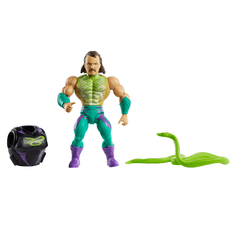 Jake “the Snake” is the “Evil Purveyor of Poison.” (Walmart link) With a removable face, Jake Roberts brings back memories of King Hiss from the original Masters of the Universe line.
