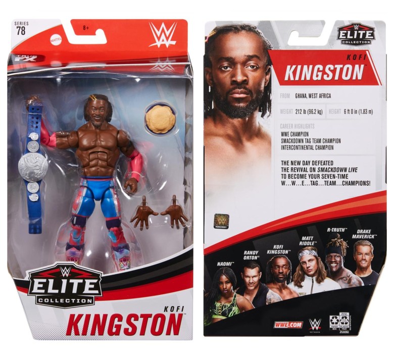 Elite 78 Kofi Kingston feels like a letdown after seeing the rendering. The attire colors appear darker and less vibrant than the rendering and don’t have the same pop. Plus, Kofi’s head sculpt feels a little off. Maybe it’ll look better in-person — and I reserve the right to be totally wrong — but as of now, I’m happier with the WrestleMania 36 Elite from earlier this year. Verdict: Pass.