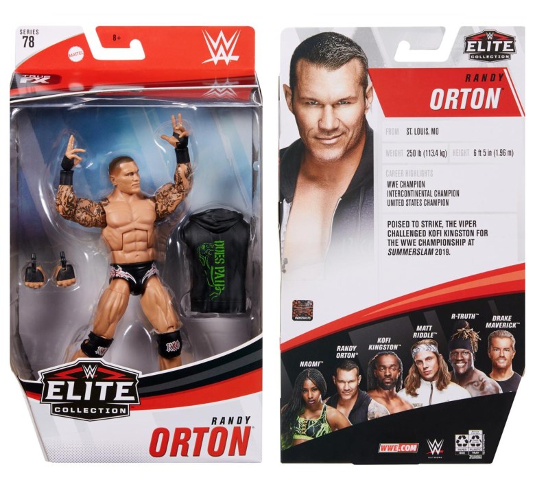 Randy Orton’s Elite 78 figure doesn’t appear to be much of an upgrade over the Elite 67 or WrestleMania 34 Elites. Nevertheless, I want to see the head sculpt up close before making a final judgement. Still, there’s not much to go with this Orton — another hoodie? hands? — to incentivize an order. Verdict: On the fence.