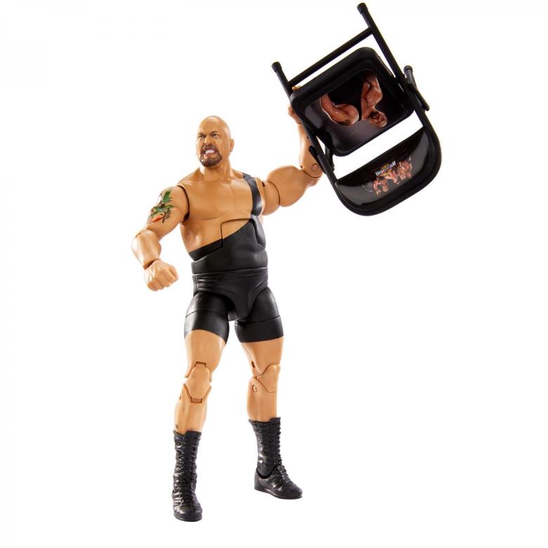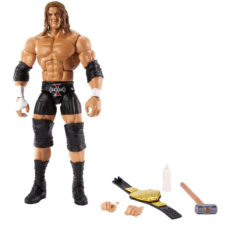 Triple H comes in a classic Evolution attire, with bike shorts, commemorating his recovery from a torn groin muscle. Trips also comes with his standard Big Gold belt, sledgehammer and water bottle.