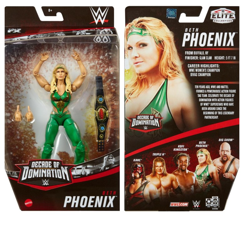 Beth Phoenix is the most colorful figure in the set, with an eye-popping green bodysuit.