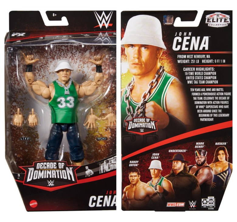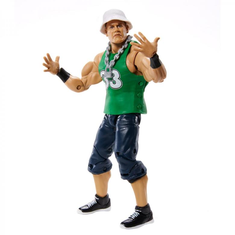 In wave one, John Cena is featured in his Dr. of Thuganomics look, with a faux Larry Bird jersey, bucket hat and Word Life brass knuckles.