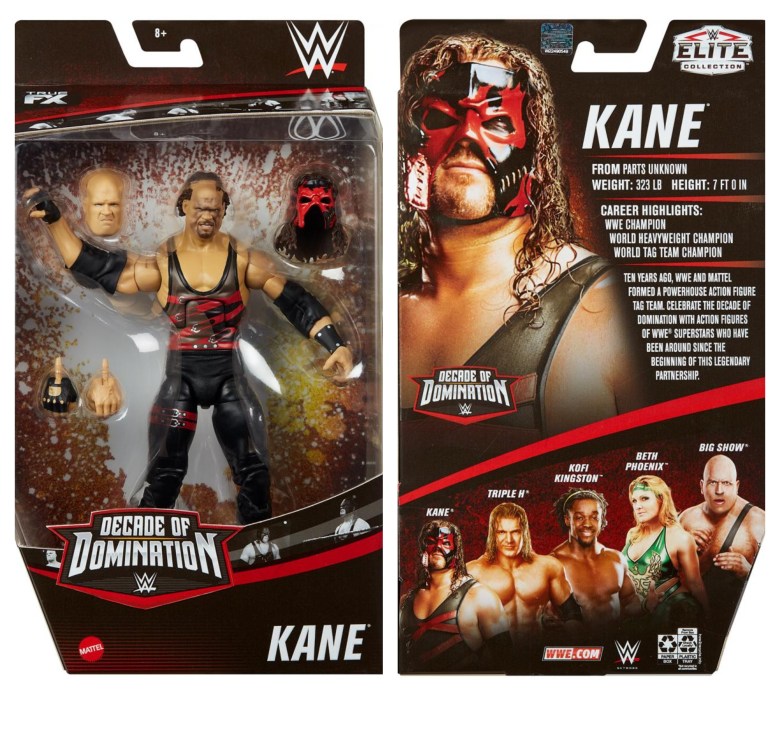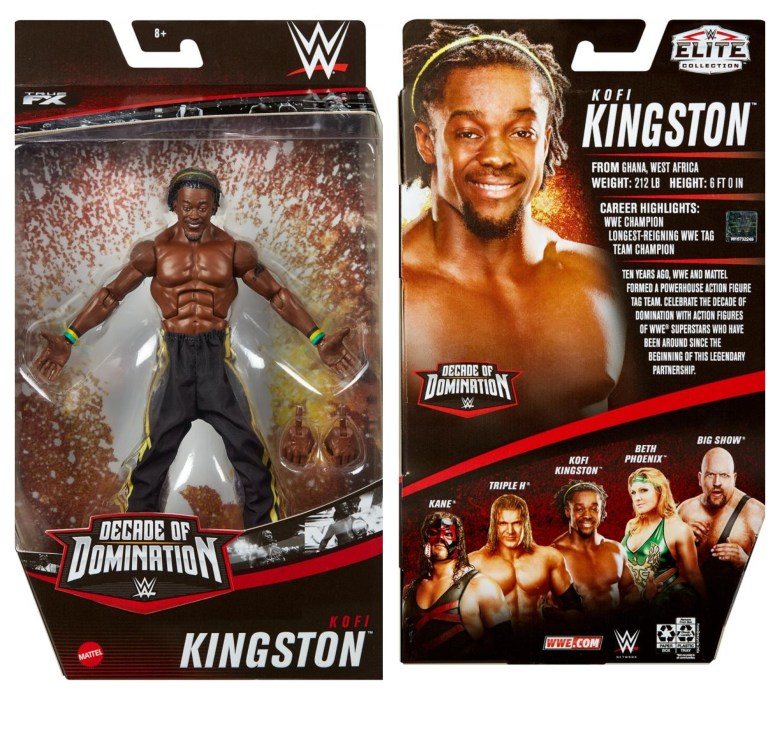 The second wave includes Kane, Triple H, Kofi Kingston, the Big Show and Beth Phoenix. Triple H and Kofi Kingston are the only figures in wave two still available for pre-order at Walmart.com. Priced at $19.99, they’re slated to ship on December 1.