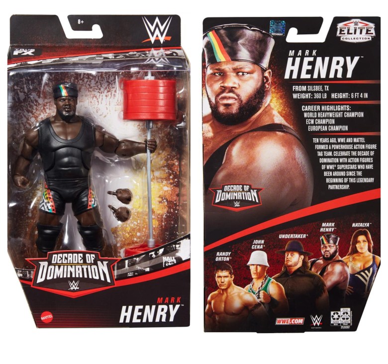 With the release of this Mark Henry, Mattel is closer to completing the Nation of Domination. Henry comes with some big time weights.