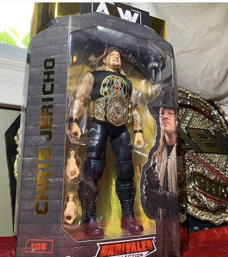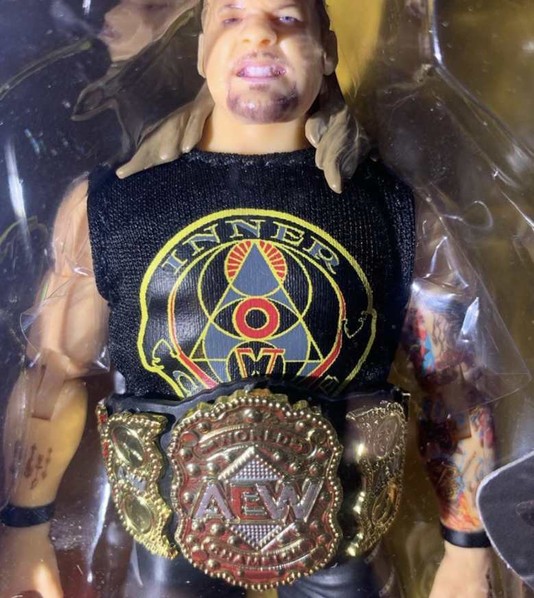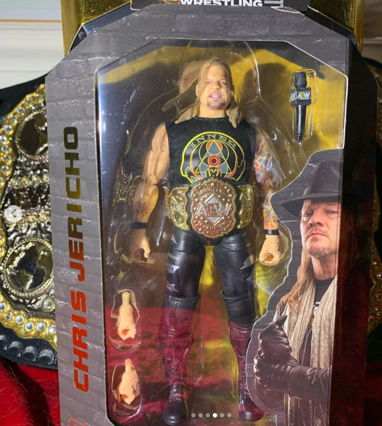The figure was included in his full-set order from Ringside, instead of the regular series Jericho figure. The chase figure includes an exclusive Inner Circle cloth T-shirt, the AEW World Heavyweight Championship belt and a microphone accessory. Wrestling Figure News is sharing the photos with permission.