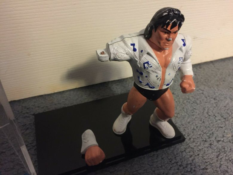 The R&B Valentine figure was never released but teased in a Toys R Us ad in the March 1991 edition of the WWF Magazine. Valentine, with jet black hair and a molded entrance jacket, was supposed to be included in a tag team wave with his partner, the Honky Tonk Man. However, that didn’t happen.