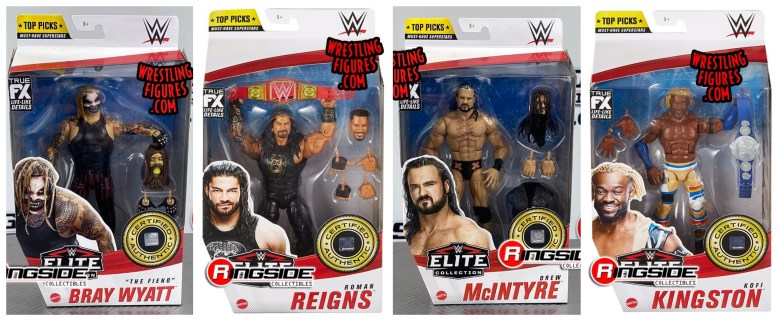 Image of the next Mattel WWE Top Picks series were revealed today by Ringside Collectibles. The set features mostly repaints — and in some cases, straight up re-releases — of WWE top stars The Fiend, Roman Reigns, Drew McIntyre and Kofi Kingston.