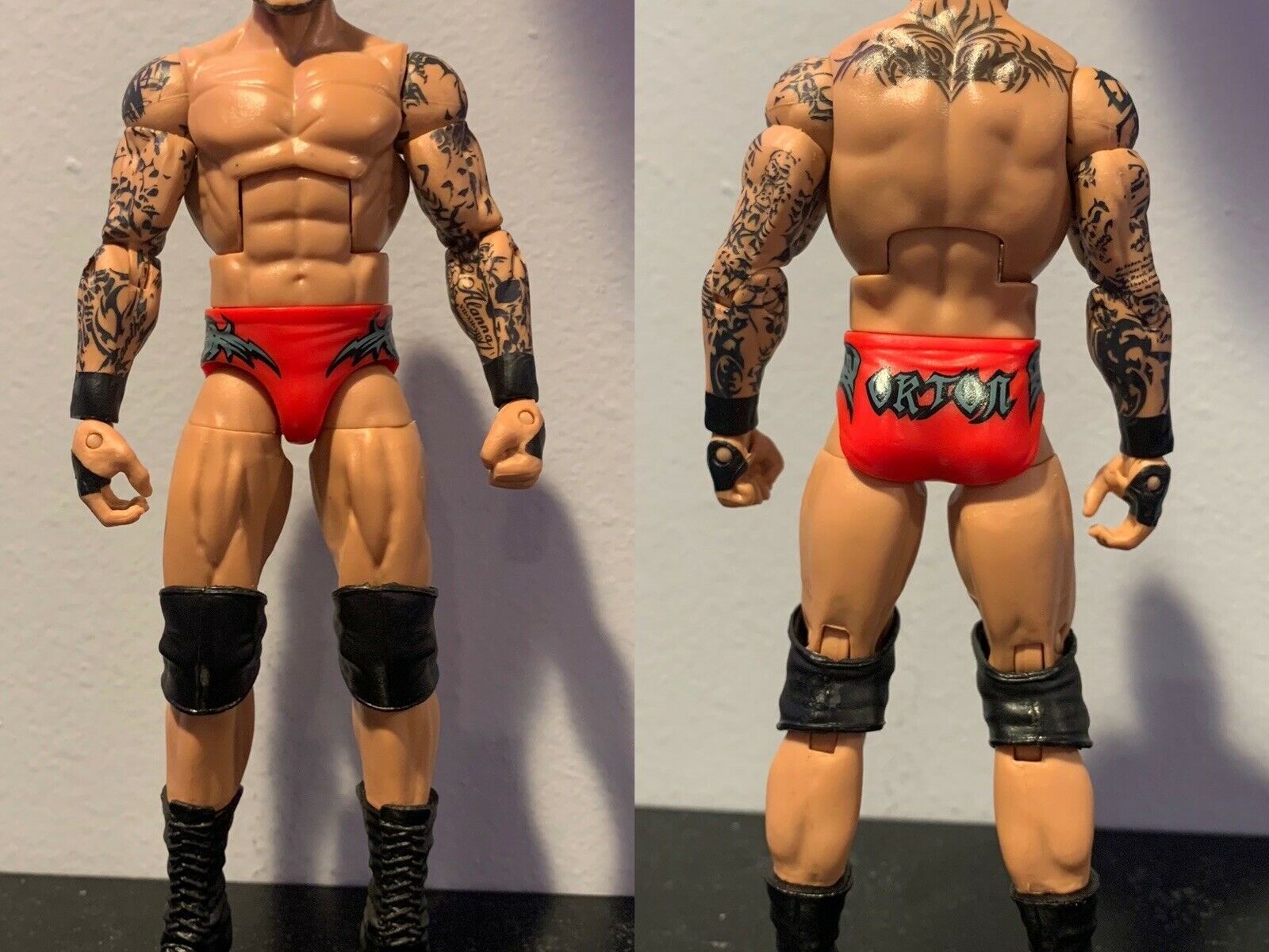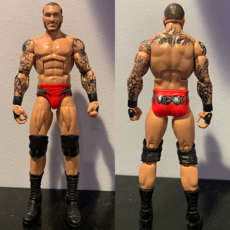“I make customs and have both done hand painted and decals to make figures and the logos on the trunks are way too perfect to be a custom,” Anonymous_Figurecollector told Wrestling Figure News. “If decals were used there would be an outline or wrinkles in the decals. Also for the Randy Orton, no other figure has that color of trunks that shade and brightness and it’s molded throughout.”
