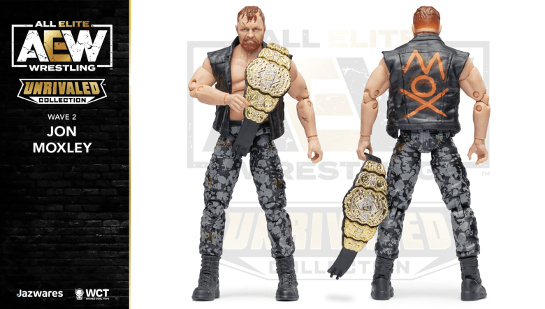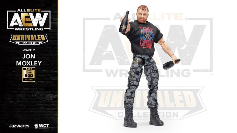 Jon Moxley will be the 1-in-500 chase figure in the second wave of AEW Unrivaled figures from Jazwares. The figure comes with soft goods Inner Circle shirt and bottles of bubbly.