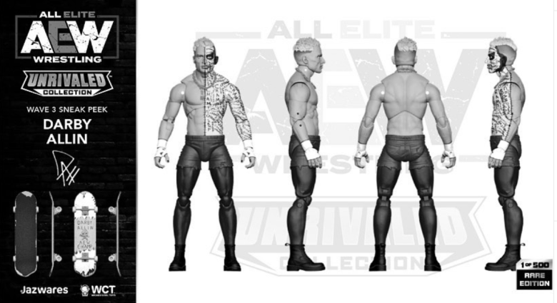 In addition to a 1-in-500 rare figure of Darby Allin is a 1-in-1,000 chase Rhio figure.