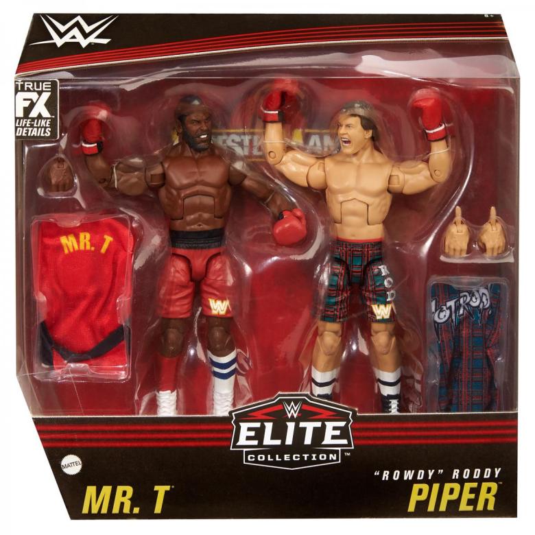 The Mr. T versus “Rowdy” Roddy Piper 2-pack is now shipping from Ringside Collectibles. The set retails for $54.99. The set, commemorating T and Piper’s WrestleMania 2 boxing match, marks the second T figure in the Elite line this year, following his Comic-Con exclusive release.
