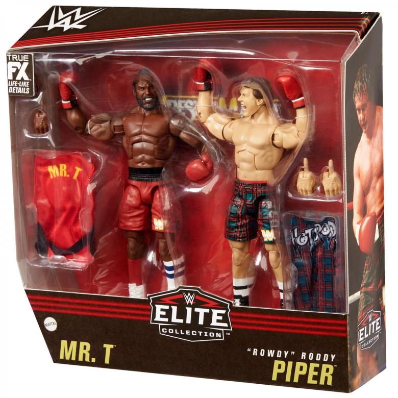 The Mr. T versus “Rowdy” Roddy Piper 2-pack is now shipping from Ringside Collectibles. The set retails for $54.99. The set, commemorating T and Piper’s WrestleMania 2 boxing match, marks the second T figure in the Elite line this year, following his Comic-Con exclusive release.
