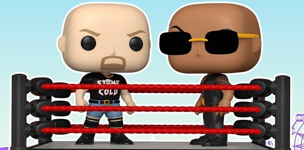 Several new WWE Funko Pops were revealed as part of the Funko Fair 2021 virtual unveilings this week. Among the reveals are a 2-pack of The Rock and Stone Cold Steve Austin with a WWE Raw ring diorama. (Order from Entertainment Earth for $29.99, with a March ship date.)