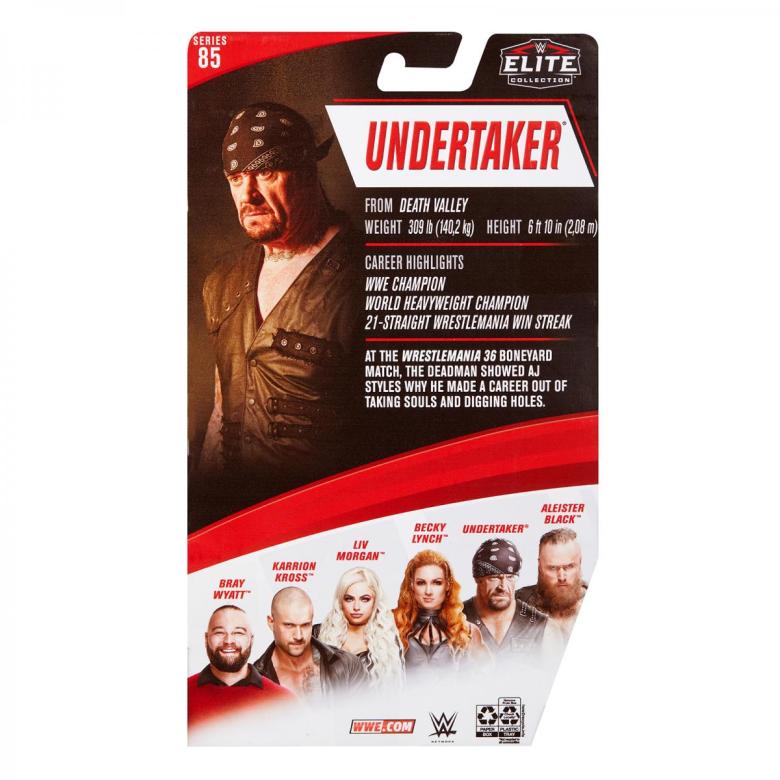 Also in the wave is the debut Elite figure of NXT star Karrion Kross, WrestleMania 36 figures of The Undertaker and Aleister Black and rounding out the six-figure set are Becky Lynch and Liv Morgan.