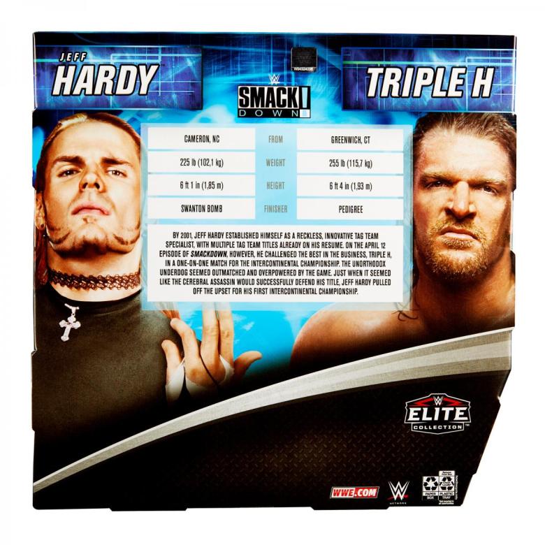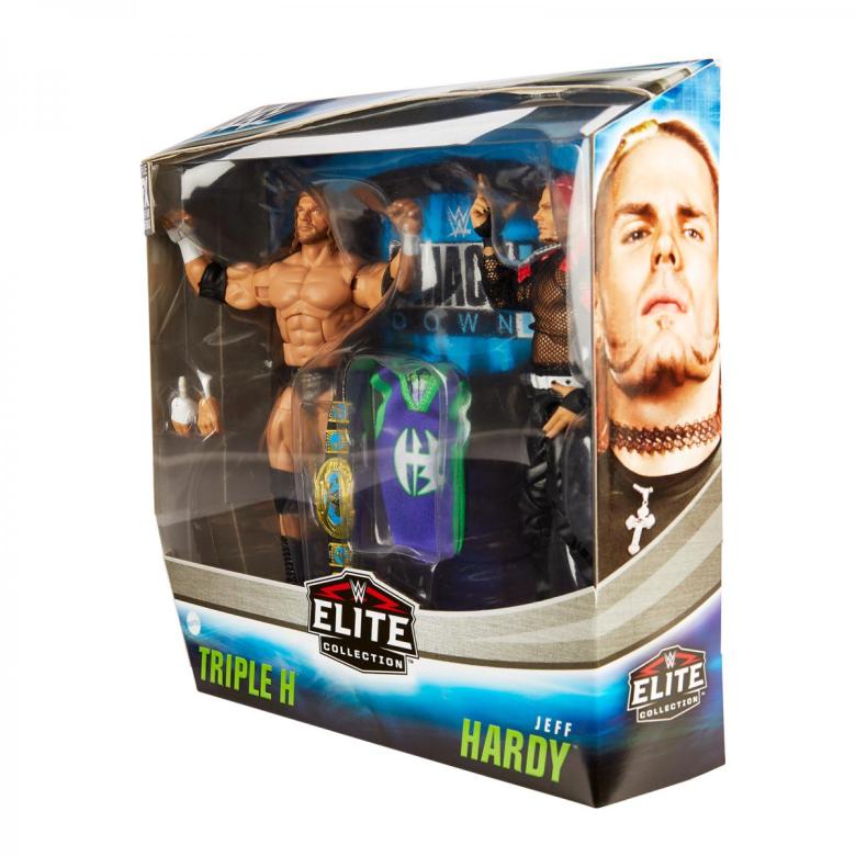 Jeff Hardy and Triple H’s Intercontinental Championship feud is coming to the WWE Elite line. Mattel offered a first look at the upcoming 2-pack.