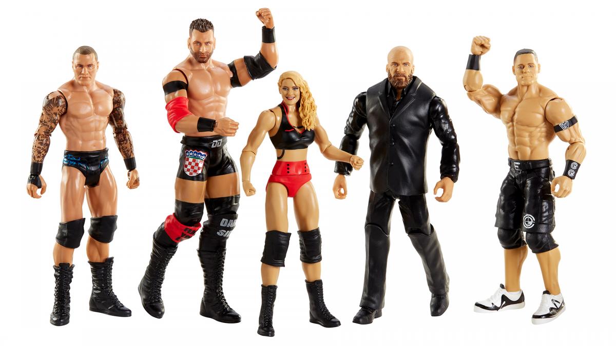 The set retails for $79.99 (10% off with code wfigs). Individual figures range in price from $17.99 (Dijakovic), to $16.99 (Evans), to $15.99 (Orton), to $14.99 (Triple H and Cena). Evans’ chase variant is available for $23.99.