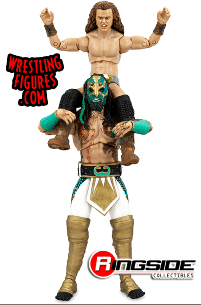The 2-pack features Jungle Boy and Luchasaurus in white attires and with new head sculpts; Jungle Boy has an angry head sculpt, while Luchasaurus’ tongue has returned to the confines of his mouth.
