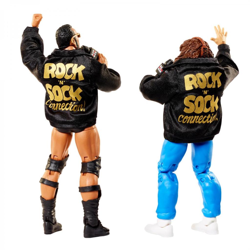 The pack comes with Rock ‘N’ Sock Connection cloth jackets, as Mattel WWE designer Bill Miekina shared in the above photo, as well as Mr. Socko and Mr. Rocko sock puppets, a Raw is War microphone, and sunglasses.
