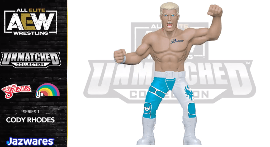 The first Unmatched line also includes the first AEW LJN-style figure, which is Cody Rhodes.
