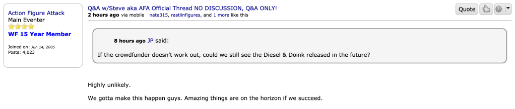 For those who believe that Ultimate Diesel and Doink might still see a release, think again. Ozer said it’s “highly unlikely” they’ll see the light of day if this isn’t successful.