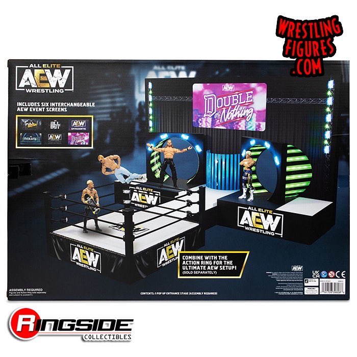 The set features six interchangeable screens for AEW’s signature TV programs and pay-per-view events: Dynamite, Dark, Double or Nothing, Revolution, All Out, and Full Gear.