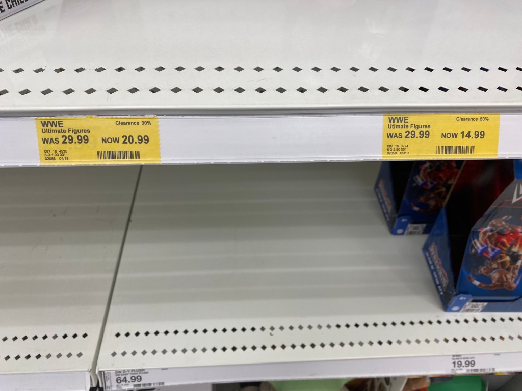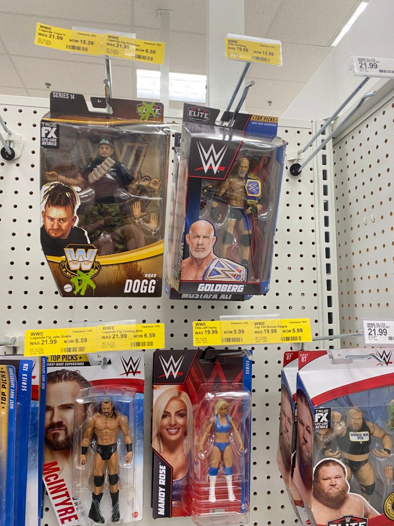 Check those Target stores. The big box retailer is clearing out some WWE stock — but not those Otis and Braun figures. Top Talents Jeff Hardy and Roman Reigns for $5.99. Legends Jake “The Snake” and Hurricane for $6.59.