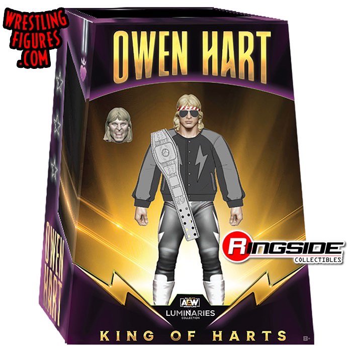 Owen Hart will receive a Ringside Collectibles AEW action figure. The “King of Harts” exclusive figure was shown during the AEW Double or Nothing Fan Fest today. The figure will come with soft goods as well.