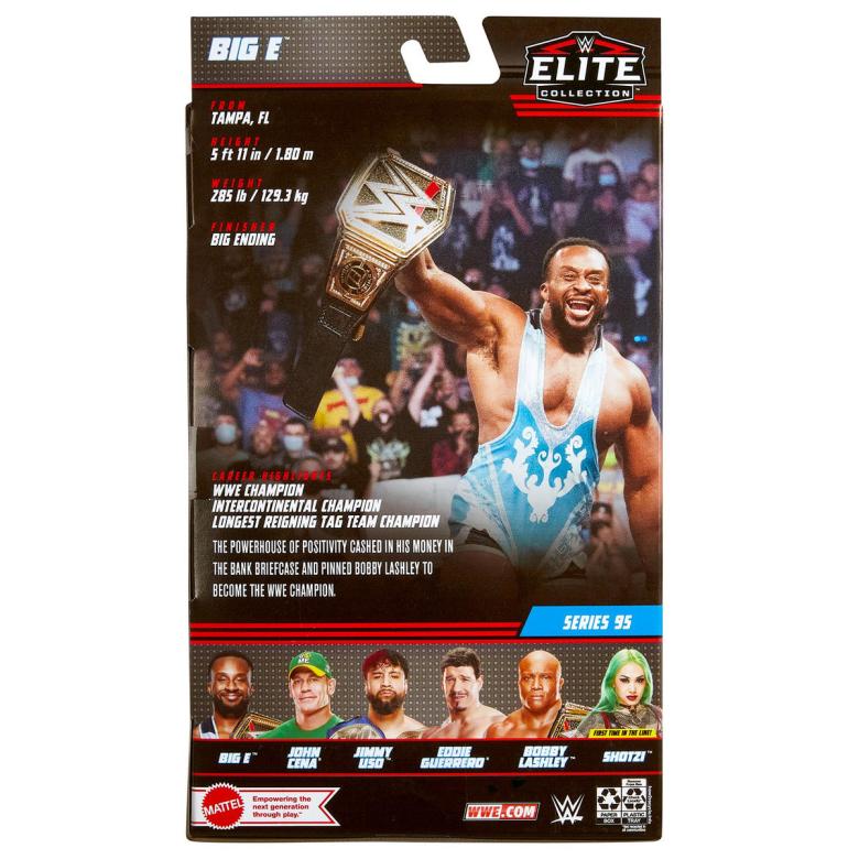 Mattel gave us a closer look at WWE Elite 95 today. First revealed during WrestleMania weekend, E95 features: Eddie Guerrero (with chase), Bobby Lashley, Jimmy Uso, Big E, John Cena and Shotzi Blackheart.