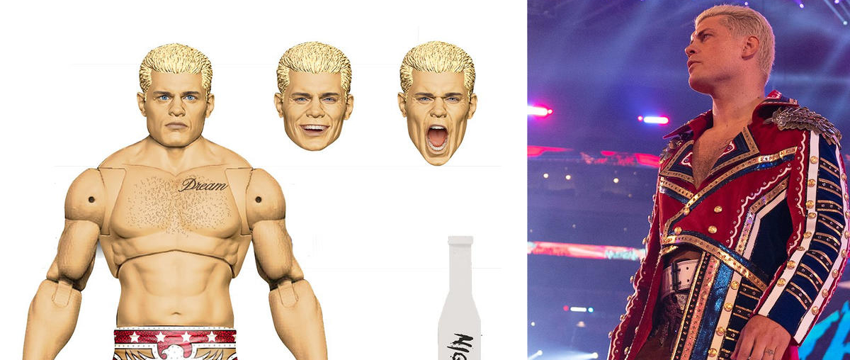 The first Cody Ultimate comes with three heads, a weight belt and soft goods robe from his WrestleMania 38 return earlier this year.