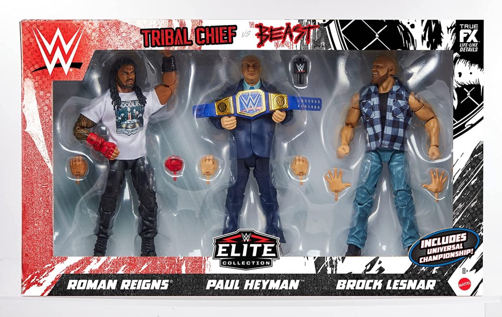 One item I’m expecting to go up for pre-order is the WWE Elite 3-pack of Roman Reigns, Paul Heyman and Brock Lesnar. Bookmark this link for the set, if you’re so inclined. No word yet on price point or ship timing.