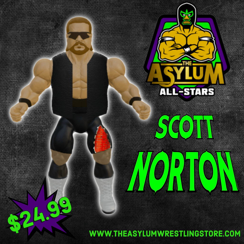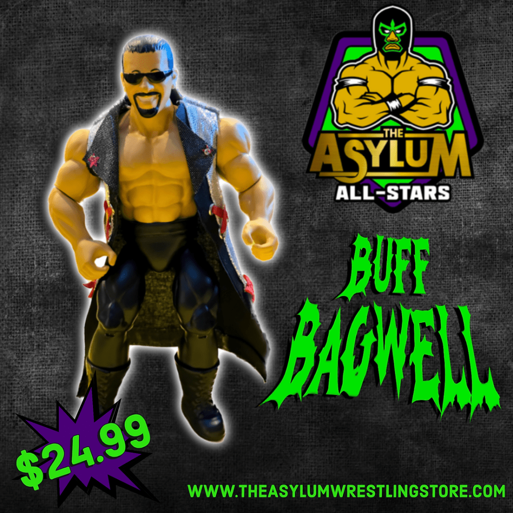 The first six Remco-style action figures from the Asylum Wrestling Store are now available for pre-order. The six figures in the Asylum All-Stars line include the Road Warriors (Hawk and Animal), Buff Bagwell, Scott Norton, and two versions of referee Earl Hebner.