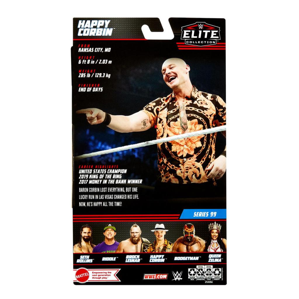 The rest of Elite 99 features chase figures of Boogeyman and Brock Lesnar, as well as Queen Zelina Vega and Happy Corbin. Here’s a look: