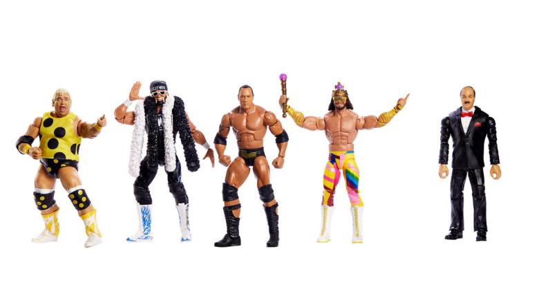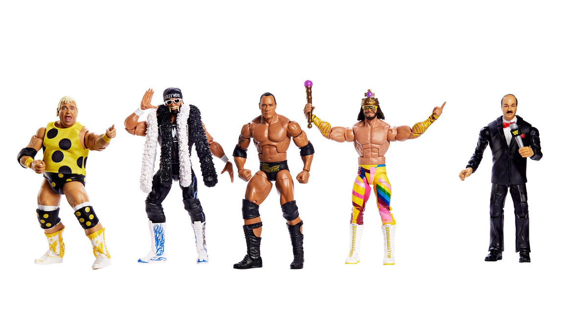 The set features “Hollywood” Hulk Hogan and The Rock from WrestleMania X8, and “Macho King” Randy Savage and Dusty Rhodes from WrestleMania VI.