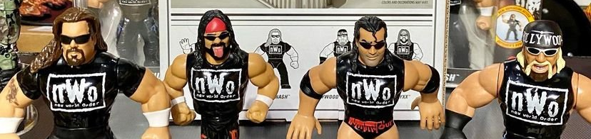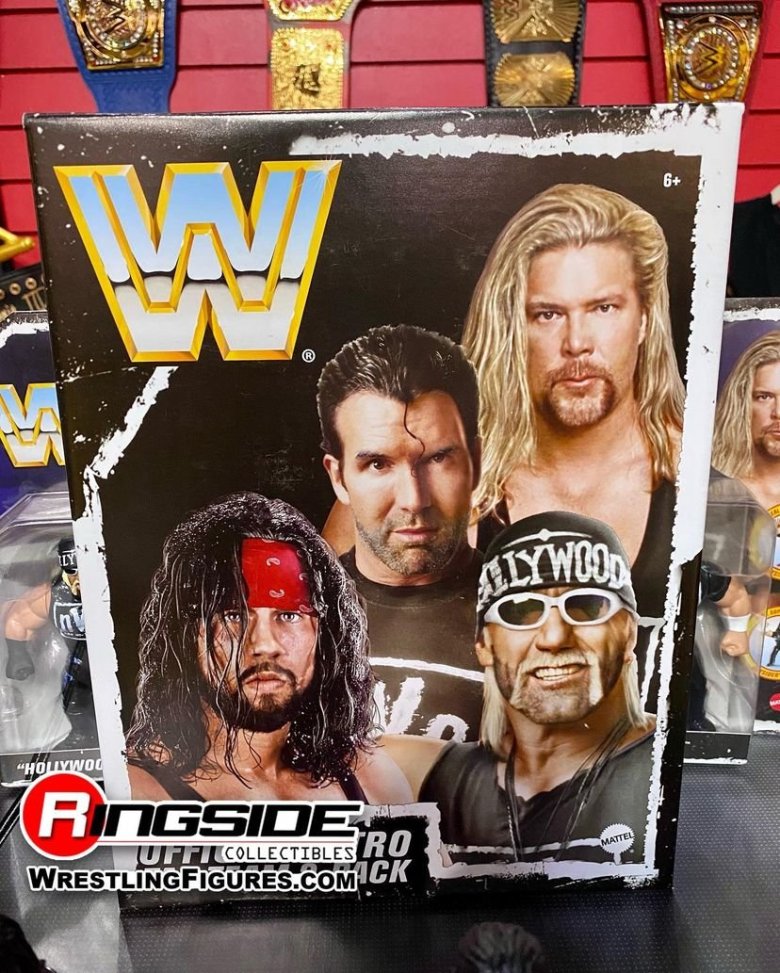 The upcoming Ringside exclusive WWE Retro nWo wave was featured during the Hogan’s Beach House reveals earlier this week. The figures will be offered as 2-packs, or a 4-pack with this collector box.