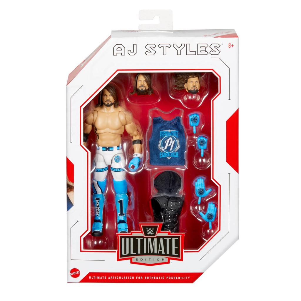 Mattel shared photos of WWE Ultimate Edition 16 today, featuring AJ Styles and Razor Ramon (with a chase figure in purple). We knew these figures were coming but this is the most comprehensive look at both figures we’ve had to date.
