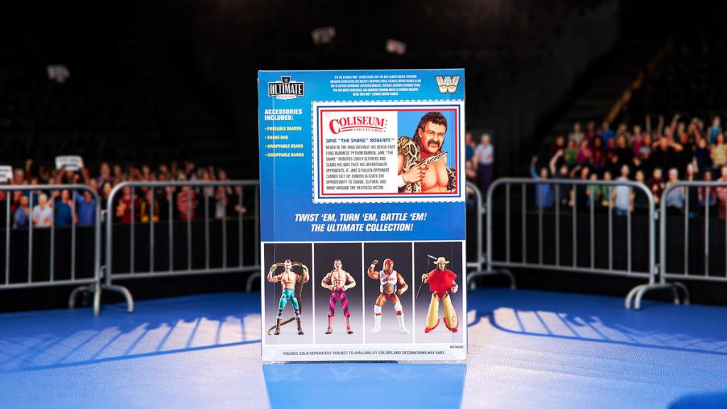 The second wave of the line paying tribute to the WWF LJN line of the 1980s will feature Jake “The Snake” Roberts and “Ravishing” Rick Rude. Here’s a look at the figures.