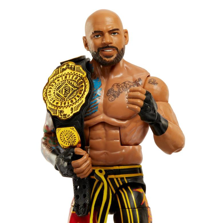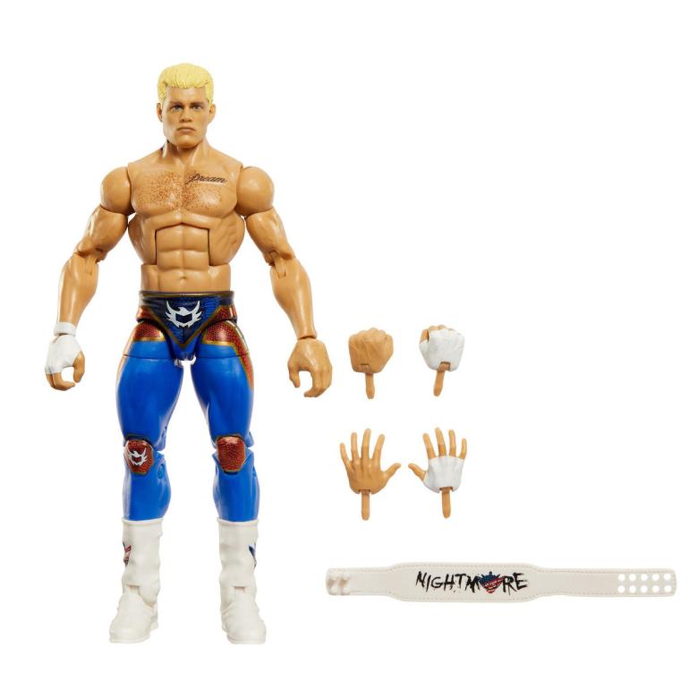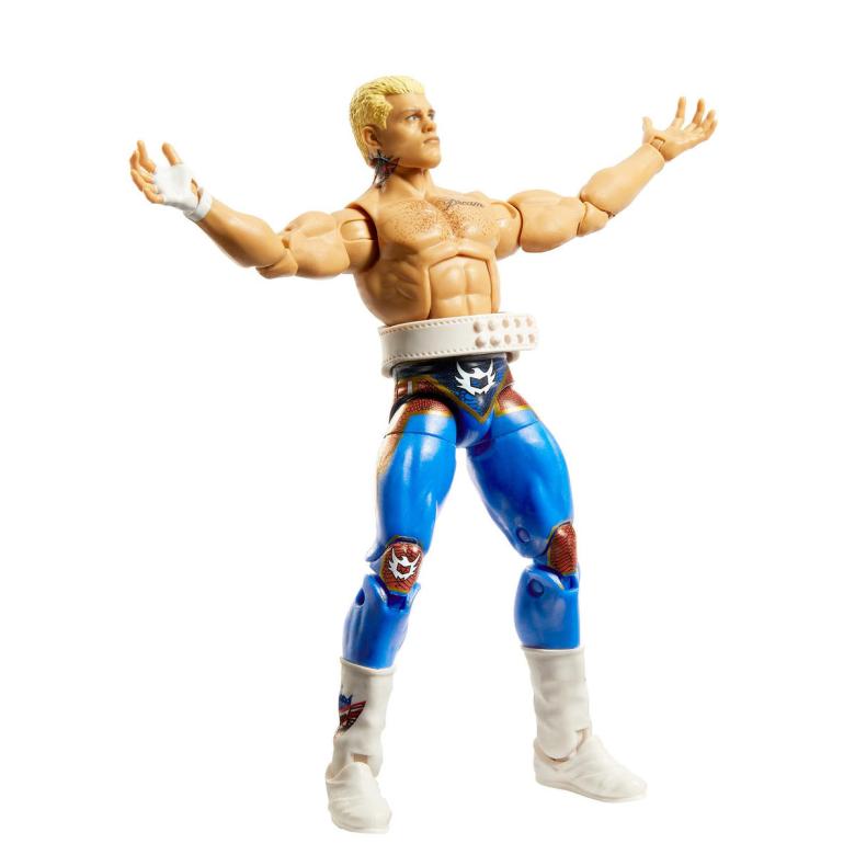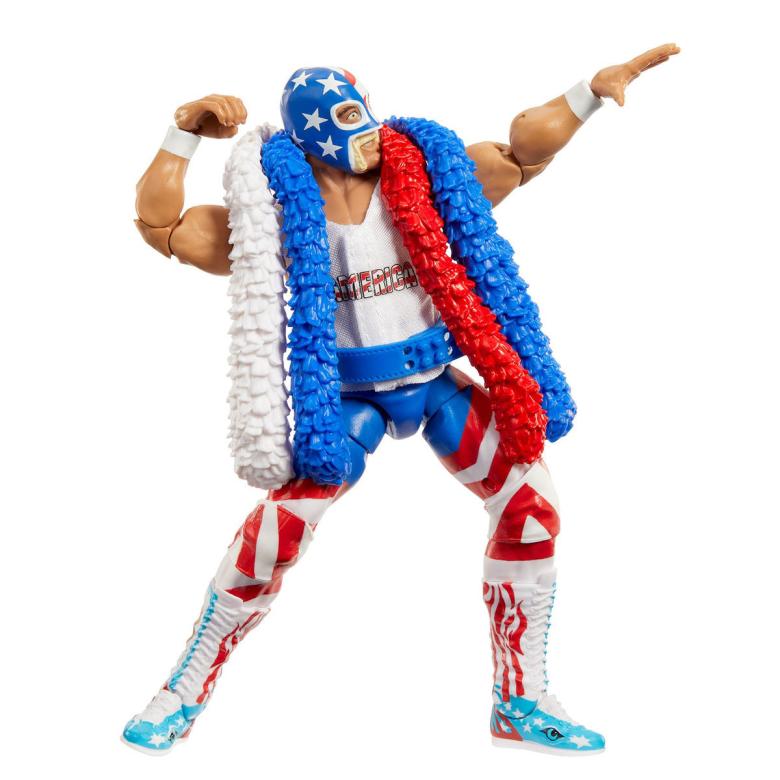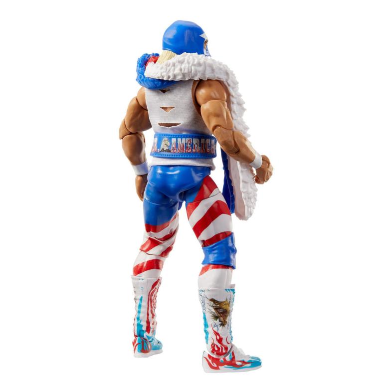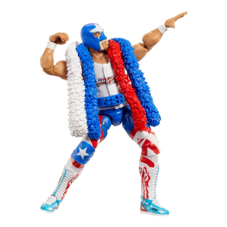 The six figures in the set include Rhodes, Mr. America (who looks a lot like Hulk Hogan), Kevin Owens, Johnny Knoxville, Sonya Deville, and Ricochet. Here’s a look at the set.