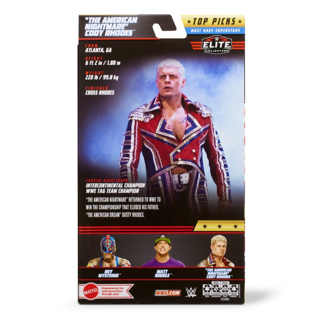 Rhodes is the only figure in this Top Picks wave with a fresh attire. Both Rey Mysterio and Matt Riddle are straight up re-releases.