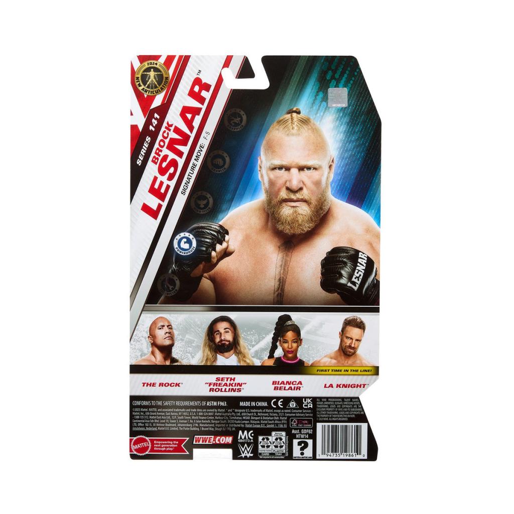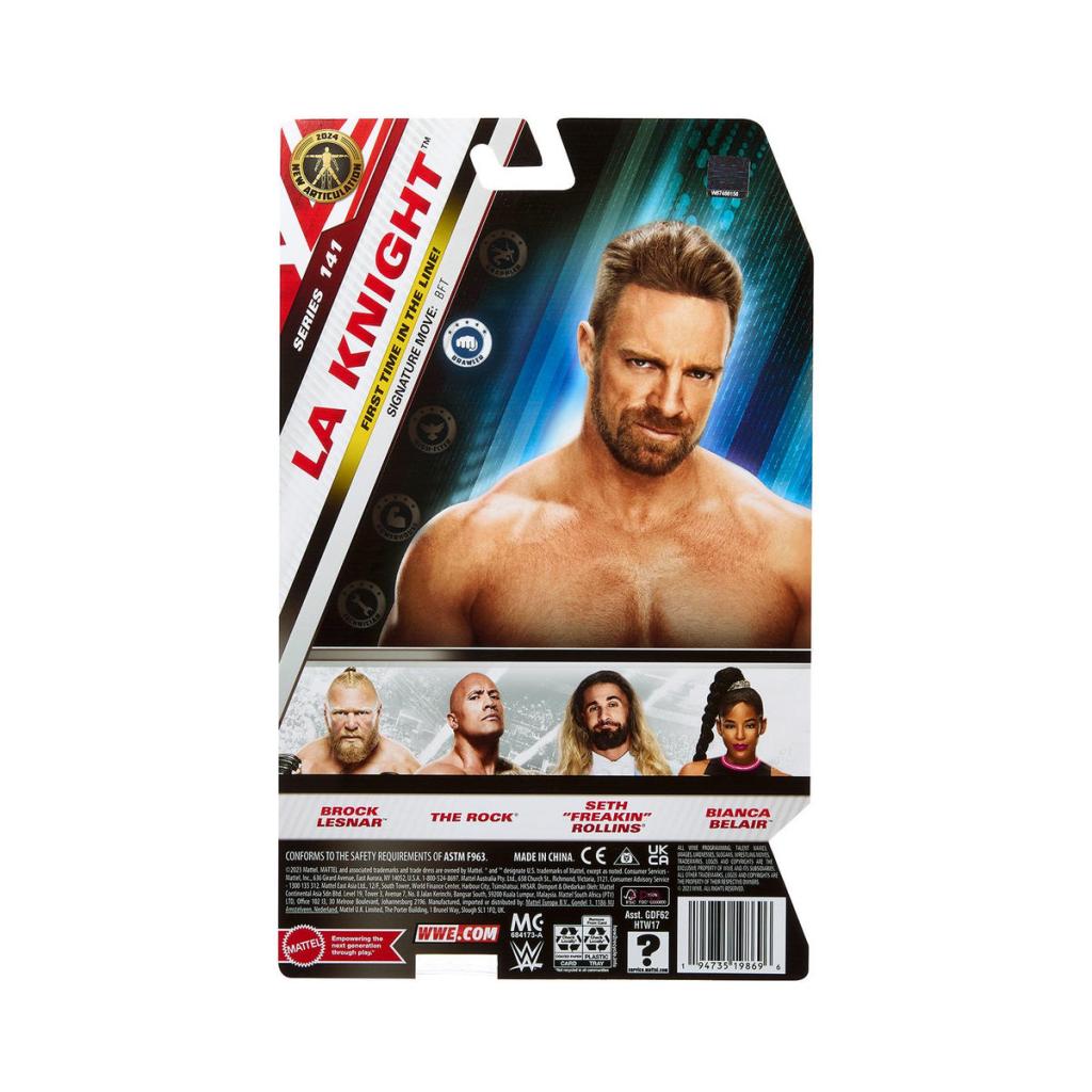 The first WWE Basic Series with the improved articulation is almost here. WWE Series 141 features the first WWE figure of LA Knight, including a chase figure, a Seth Rollins in an iridescent suit, and figures of The Rock, Bianca Belair and Brock Lesnar.