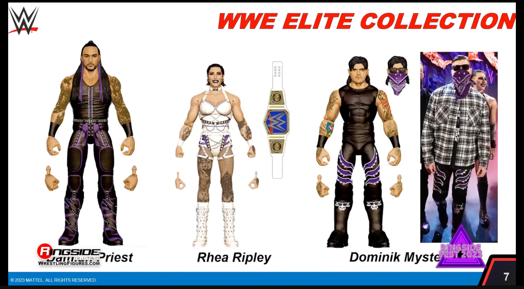Rhea Ripley and Dominik Mysterio, along with Mick Foley, were the guests on Day One and we saw upcoming Elite figures of both Rhea (Elite 110) and Dom (Elite 109), as well as Damian Priest (Elite 109).