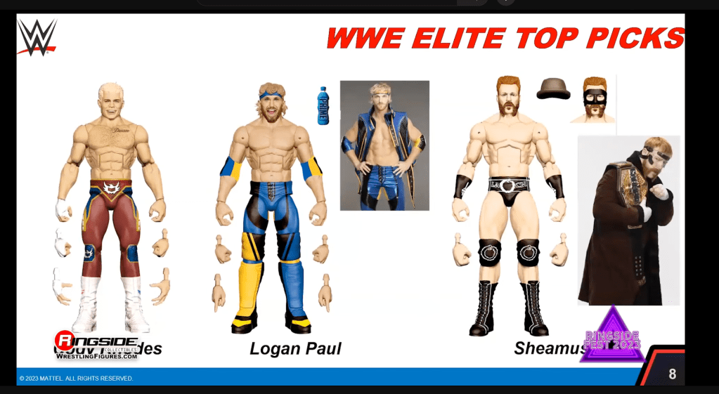 We also received a first look at renders of the WWE Elite Top Picks wave, featuring Cody Rhodes in a new attire, what appears to be the first Logan Paul Elite along with a first-in-the-line Prime bottle and a re-release of Elite 97 Sheamus. These are available for pre-order now.