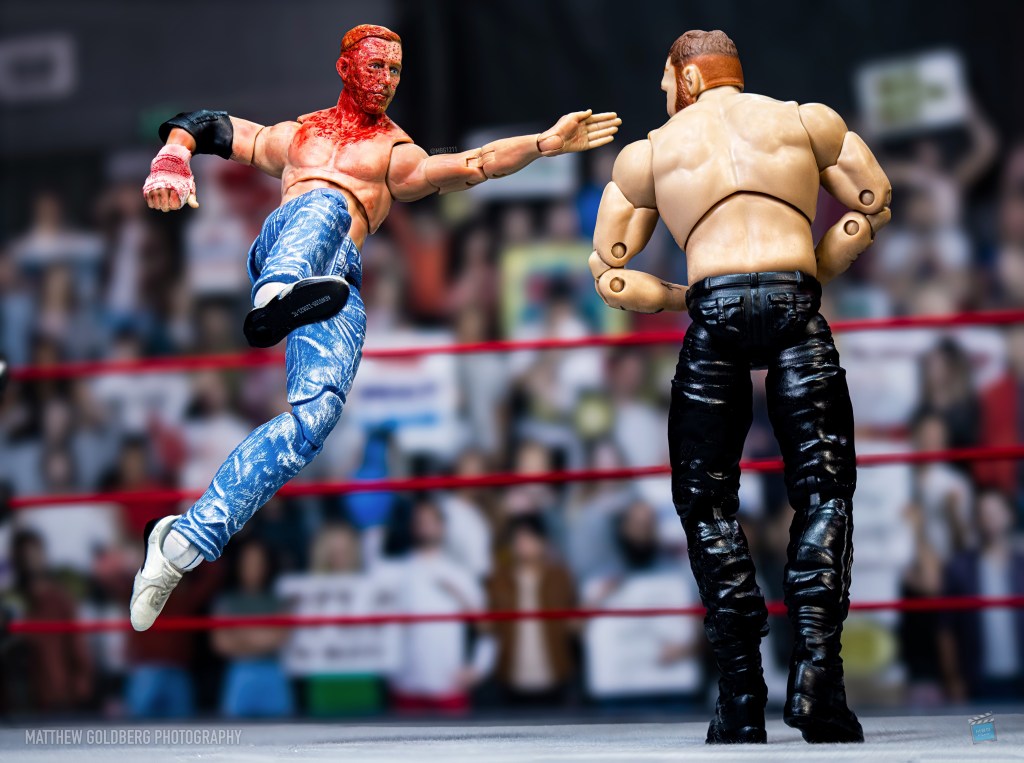 On this AEW Full Gear weekend, figure photographer Matthew Goldberg shared this image of Orange Cassidy vs. Jon Moxley with Orange delivering an Orange Punch.