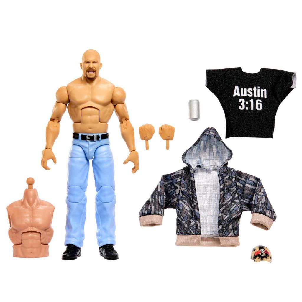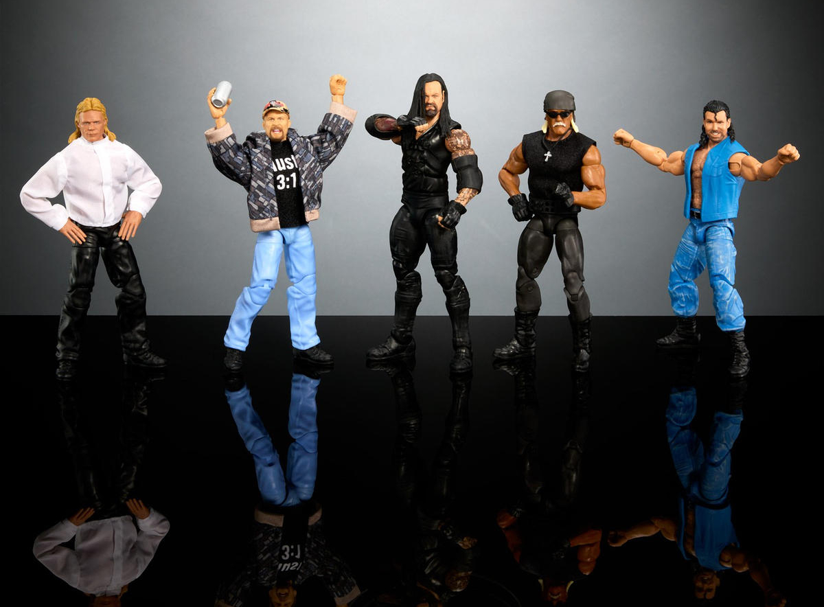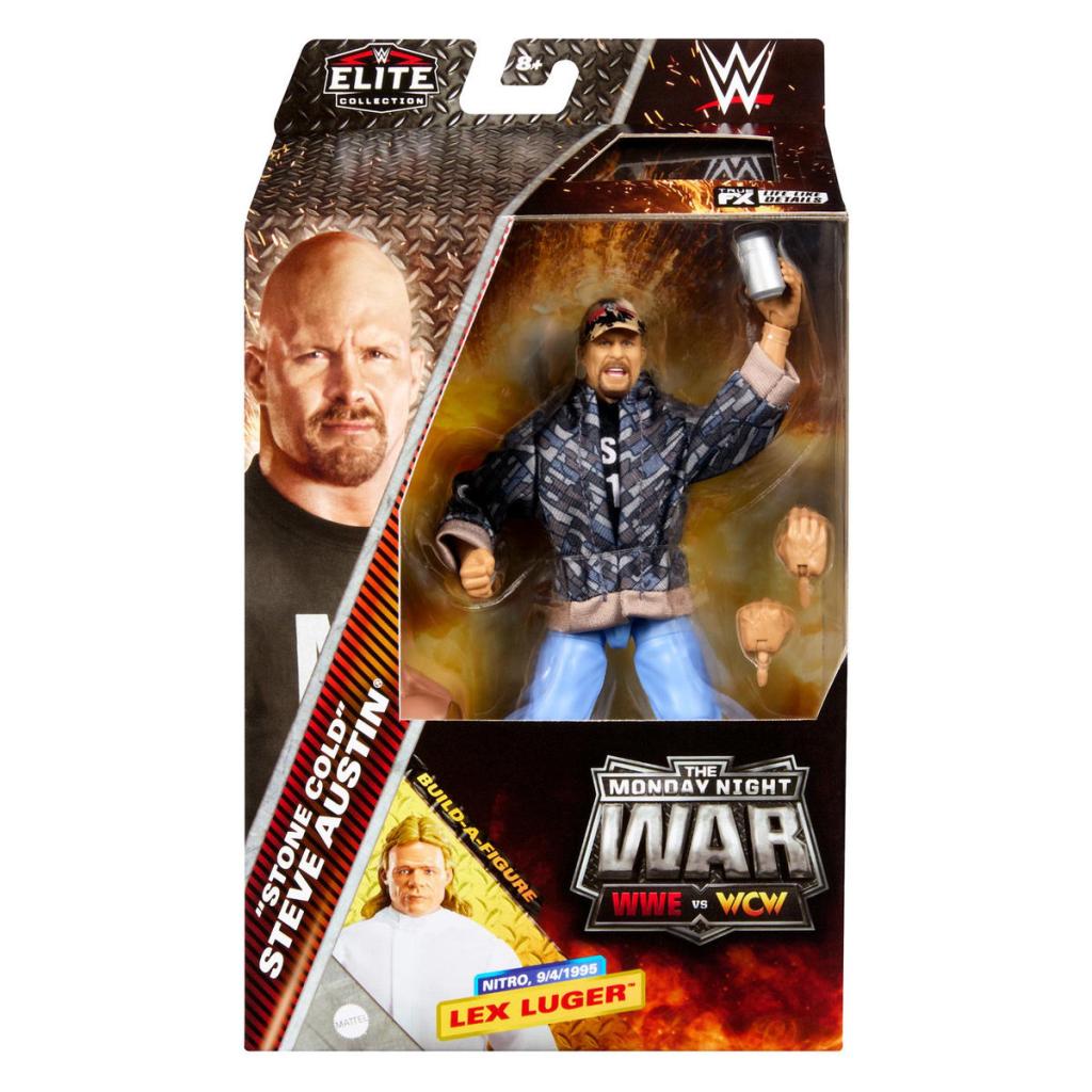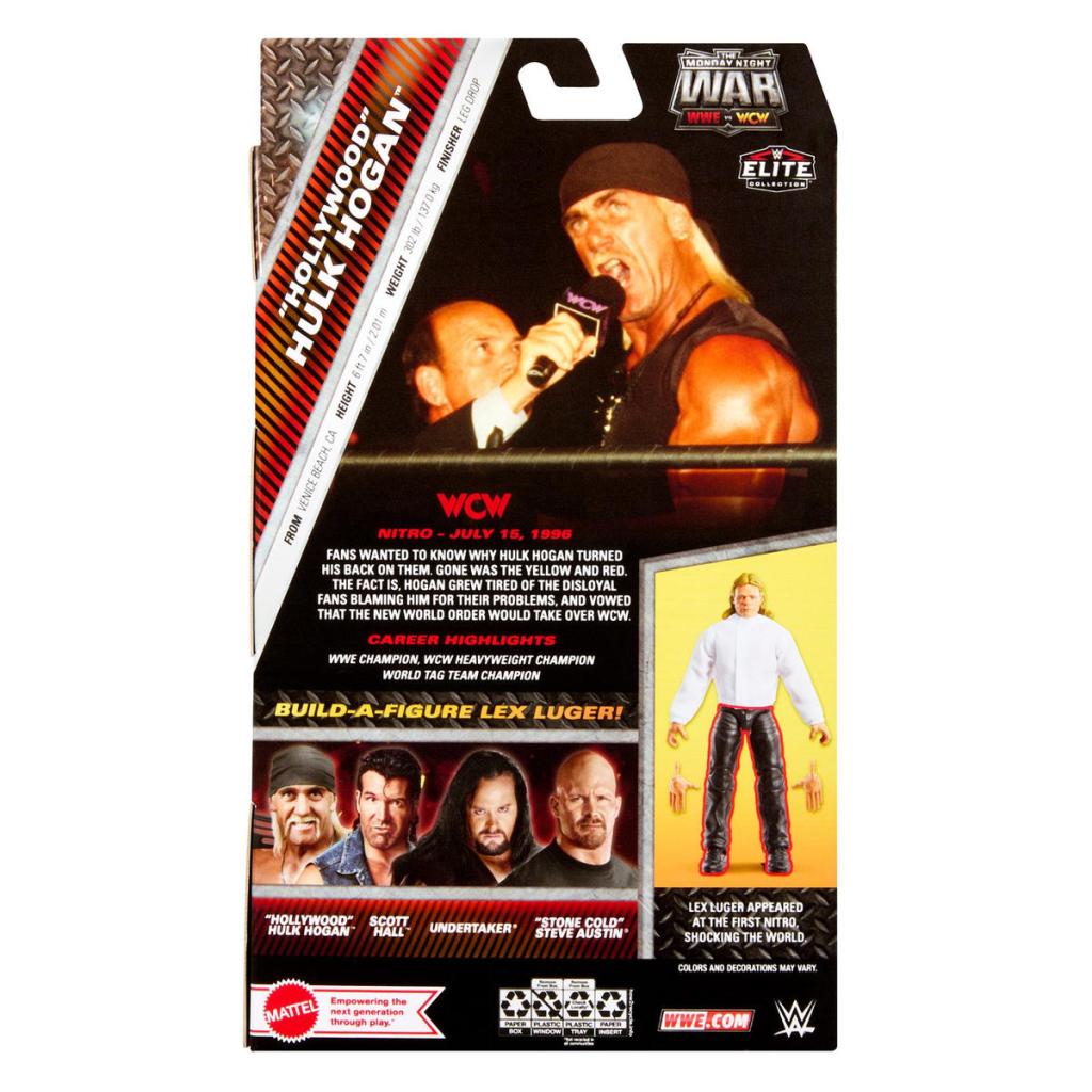 The first series of WWE Elite figures features “Stone Cold” Steve Austin, The Undertaker, “Hollywood” Hulk Hogan and Scott Hall. Buy all four and build Lex Luger from his puffy shirt return to WCW during the 1995 debut episode of Nitro at the Mall of America in Minneapolis.
