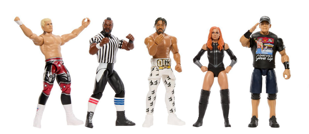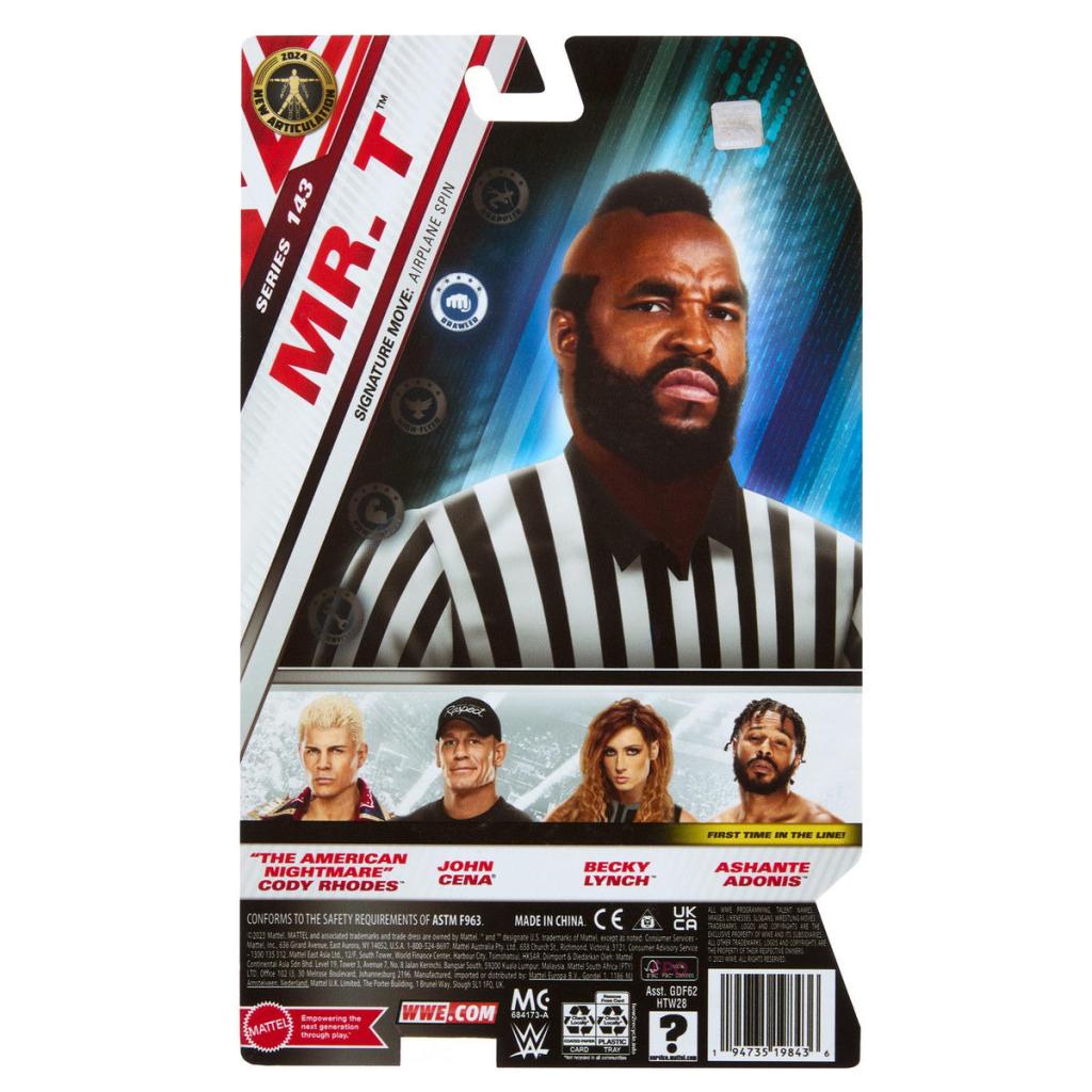 The revamped WWE Series line is in full swing. Mattel shared studio shots of several upcoming figures. Here’s a look at WWE Series 143, featuring Cody Rhodes, Mr T (with chase), first-time-in-the-line Ashante Adonis, Becky Lynch and John Cena.