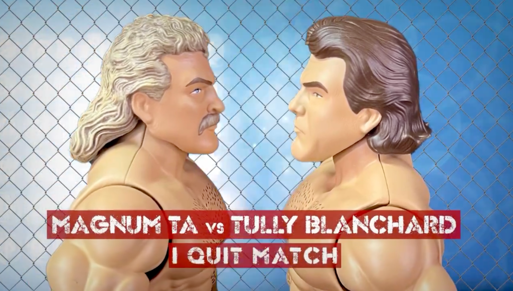 The company revealed its evolved version of Remco action figures today with a video showing off the upcoming Magnum TA vs. Tully Blanchard 2-pack to commemorate their historic I Quit Match from Starrcade on November 28, 1985.