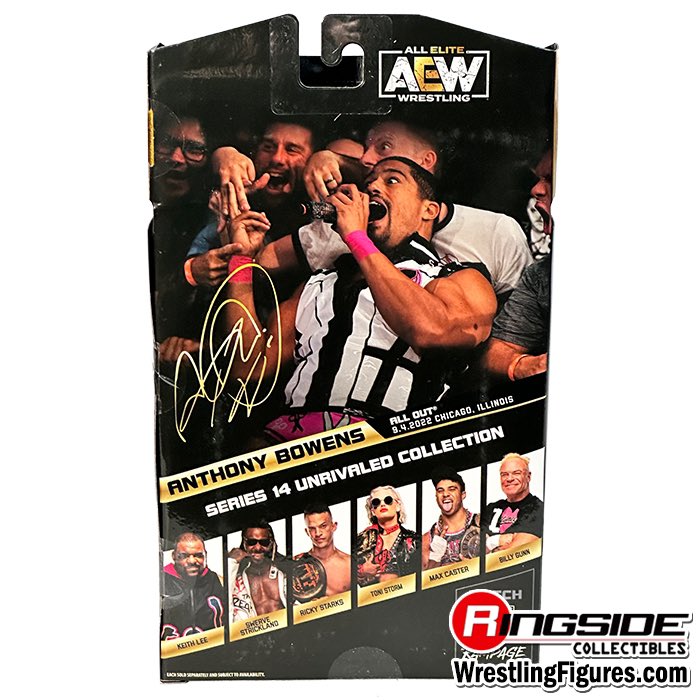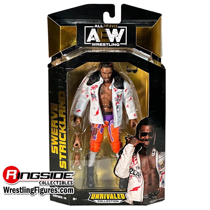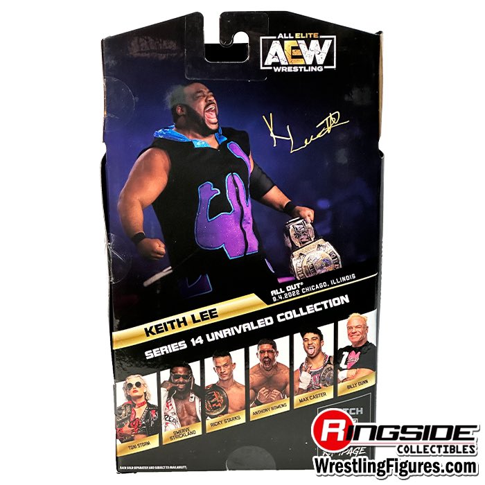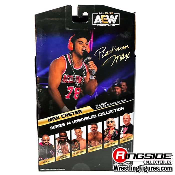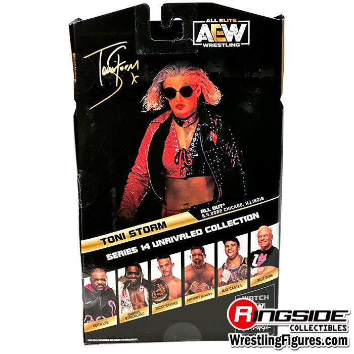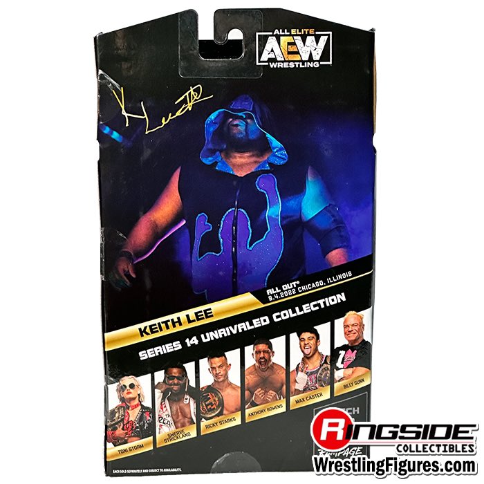 Ringside Collectibles shared in-package photos of AEW Unrivaled 14 today. The series includes several AEW action firsts: The first AEW main-line figures of Swerve Strickland, Toni Storm, Keith Lee, and the Acclaimed (Max Caster, Anthony Bowens and Billy Gunn). The set also includes a new Ricky Starks figure.
