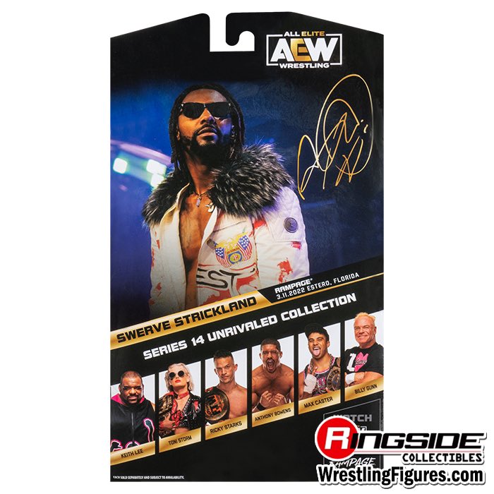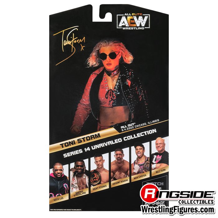 The series includes the first AEW main-line figures of Swerve Strickland, Toni Storm, Keith Lee, and the Acclaimed (Max Caster, Anthony Bowens and Billy Gunn). The set also includes a new Ricky Starks figure.