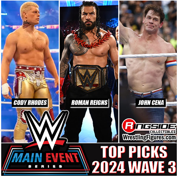 Main Event Top Picks wave three features Cody Rhodes ($17.99), Roman Reigns and John Cena ($14.99 each). They’re expected to ship in June. Follow the link to order.