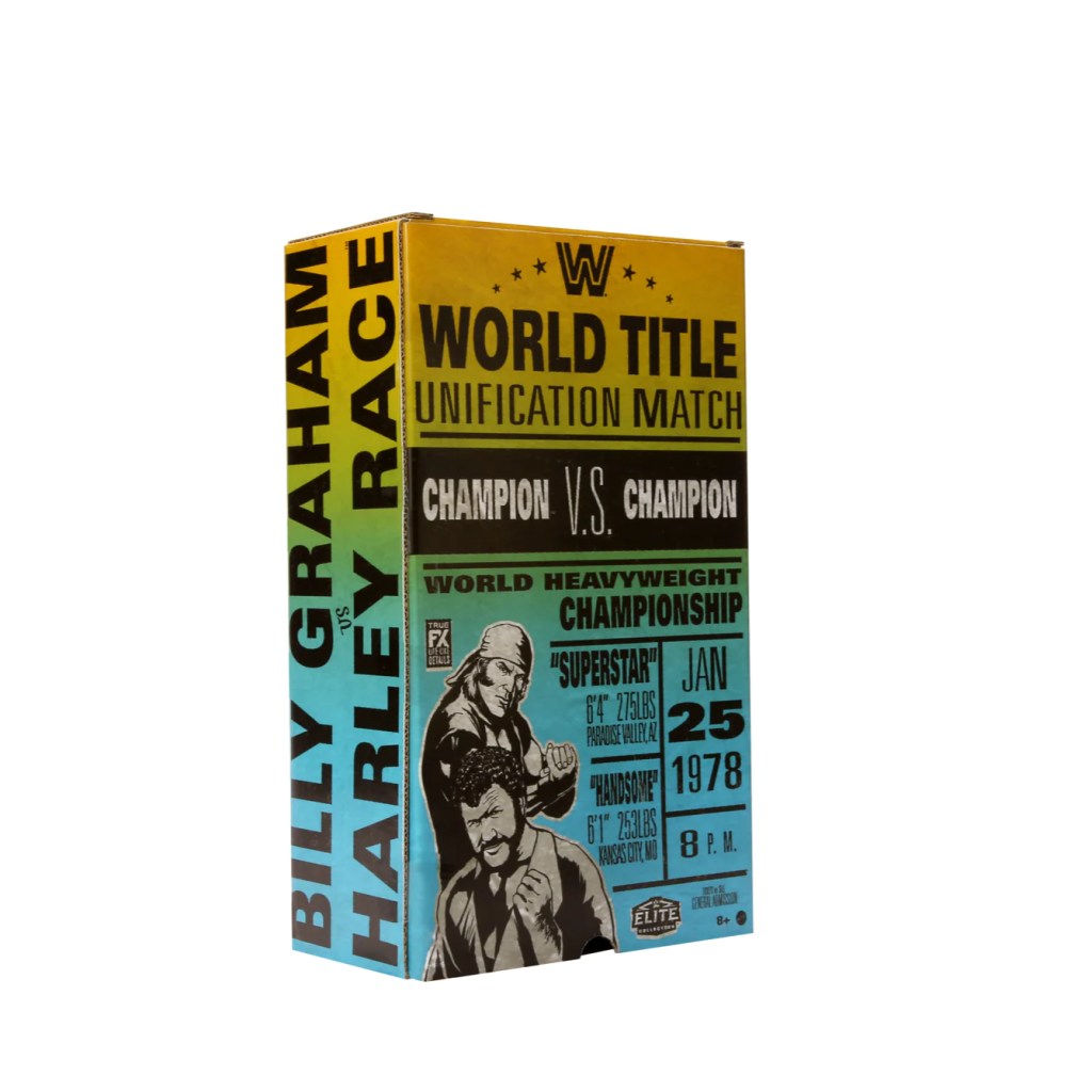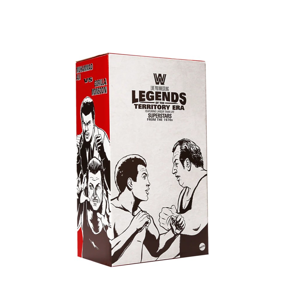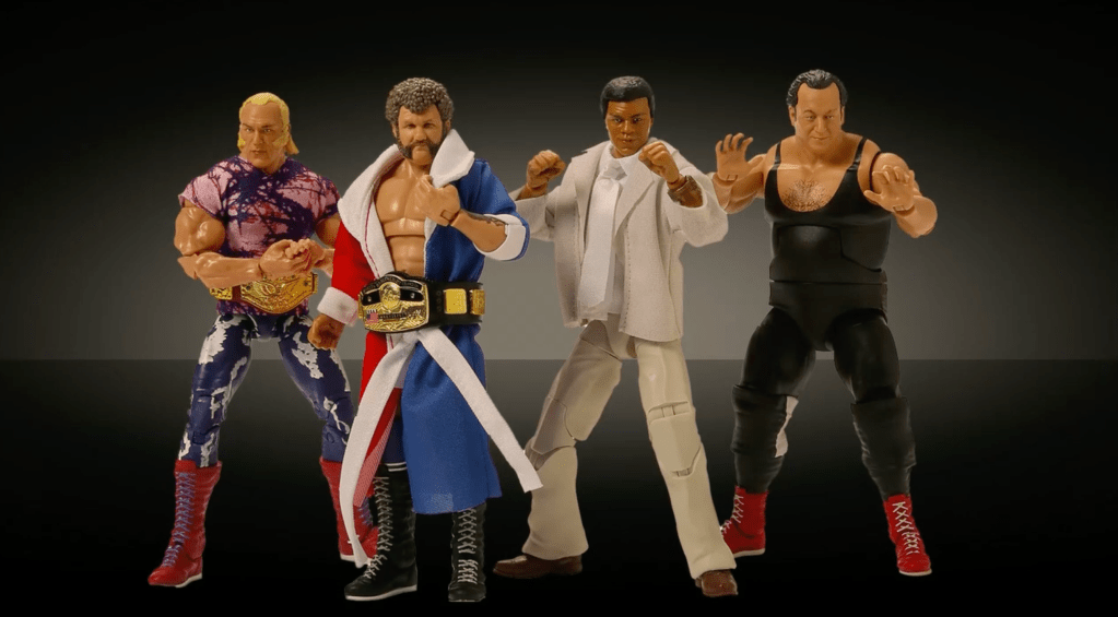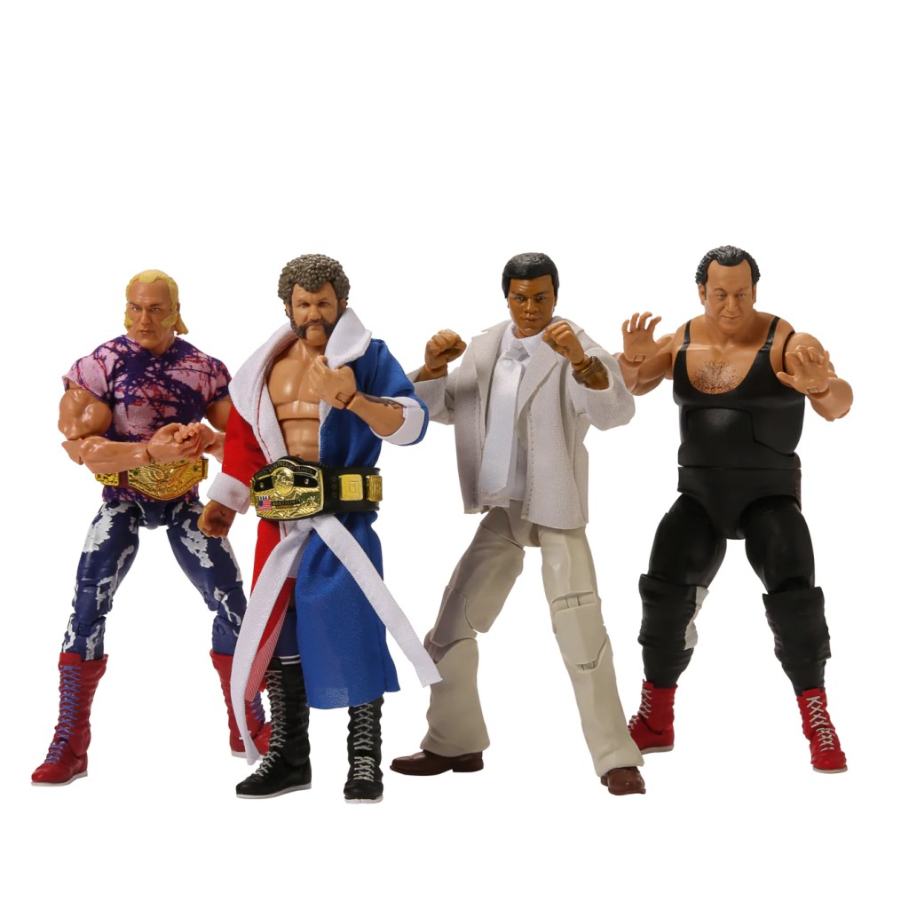 Mattel is going to the 1970s with The Legends of the Territories wave, with the first 4-pack featuring Harley Race, “Superstar” Billy Graham, Gorilla Monsoon and Muhammad Ali. The set is expected to go up for sale this spring. Notably, the wave includes the WWWF Championship and the NWA 10 Pounds of Gold.